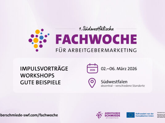 27. Januar 2026Arbeitgeberschmiede Südwestfalen lädt vom 2. bis 6. März 2026 zur Fachwoche für Arbeitgebermarketing – Online und vor Ort – Eine Woche lang wird Südwestfalen zur Bühne für modernes Arbeitgebermarketing. In der ersten […]